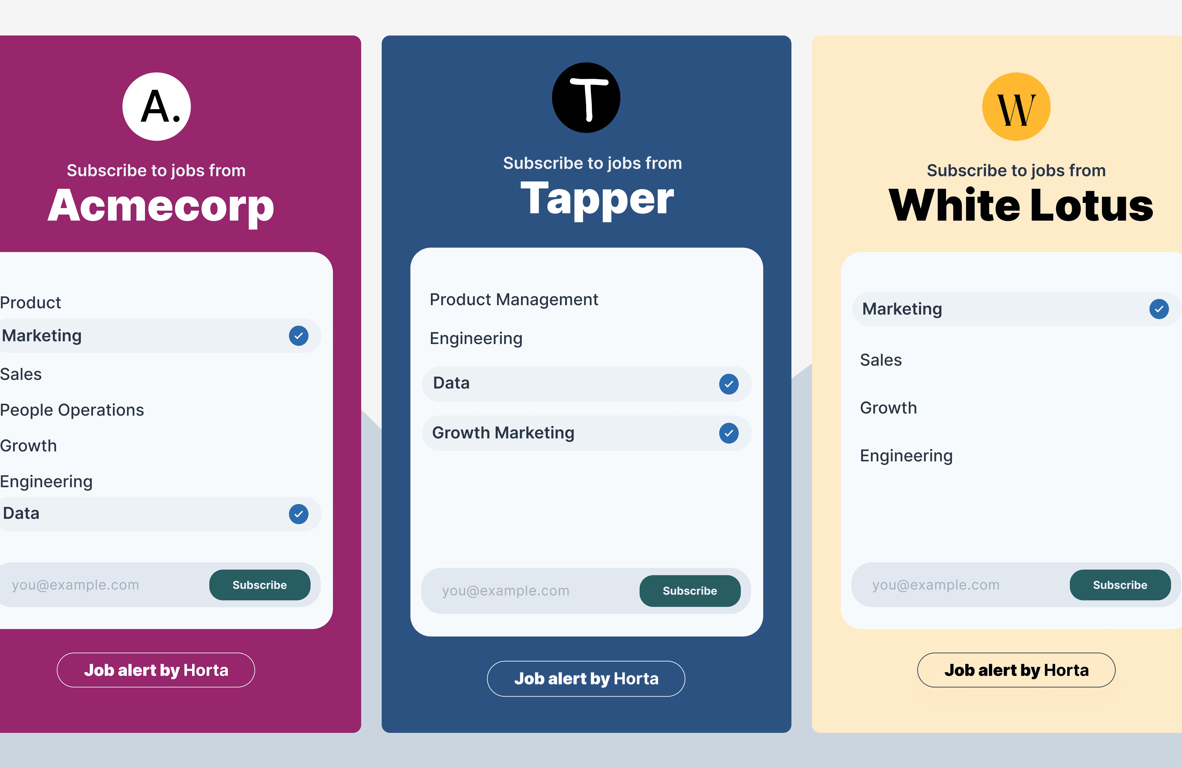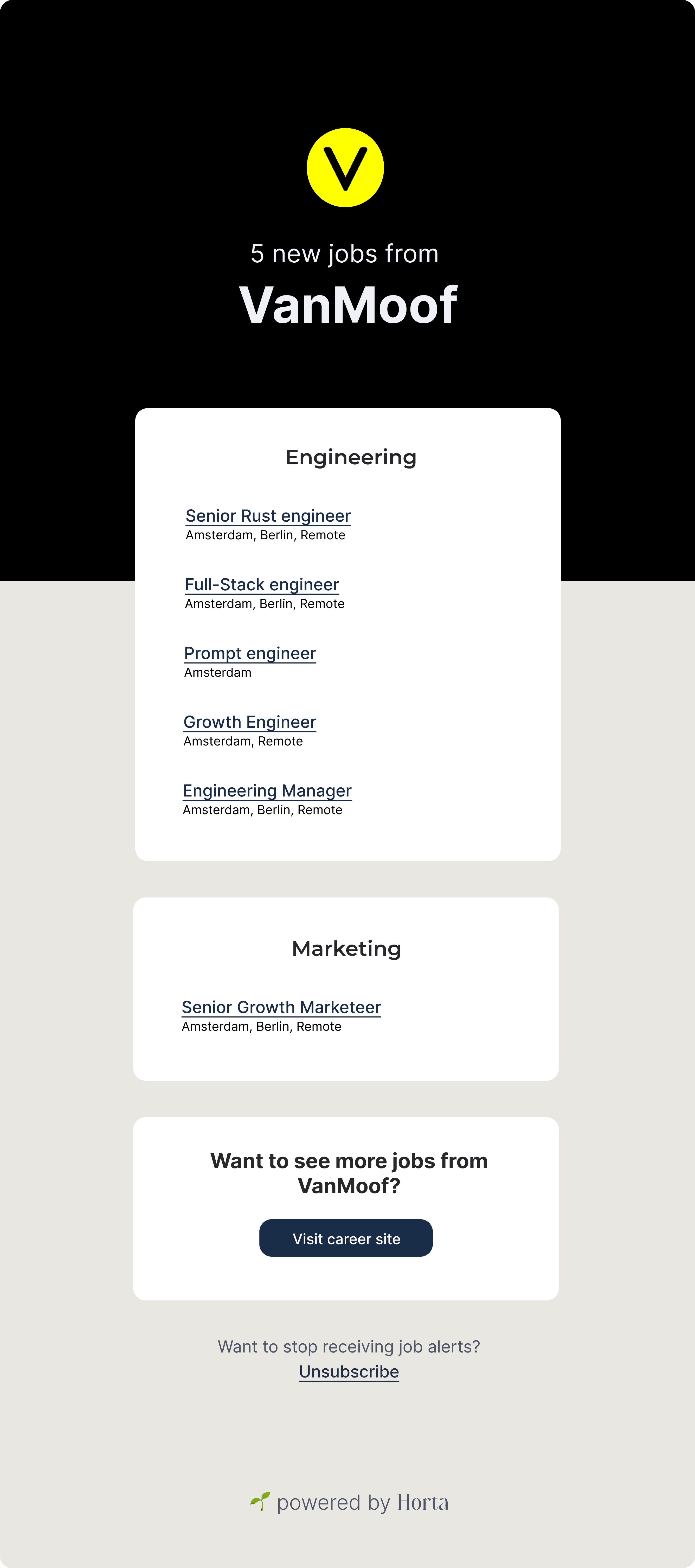 Horta automatically emails subscribers with relevant jobs whenever you publish a new role on your ATS. You don’t need to email talent manually.